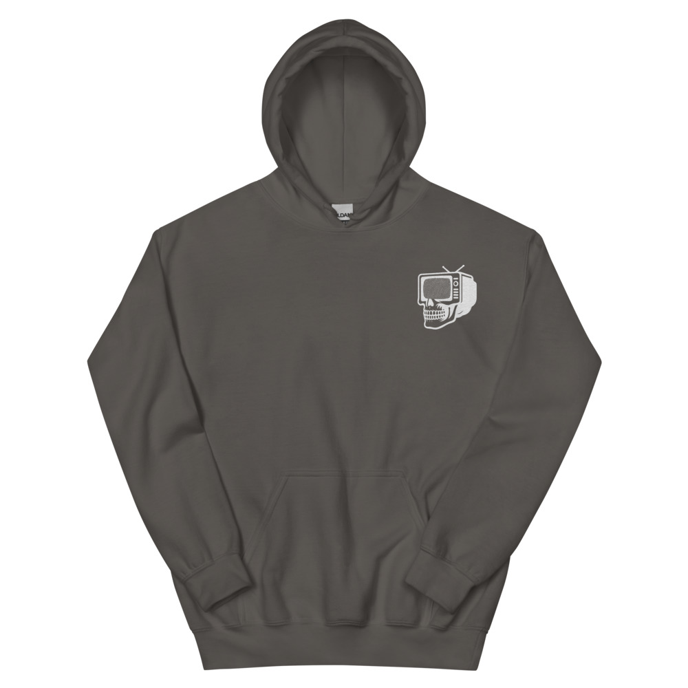 Metamelos Static Skull Hoodie Embroidered Chest, Hourglass Tape Print