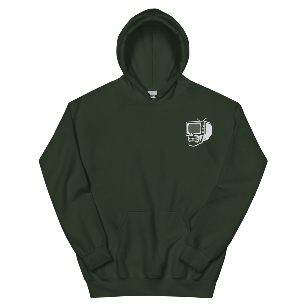 Metamelos "Drip Signal" Hoodie Embroidered Static Skull Front, Record Pool Back Print